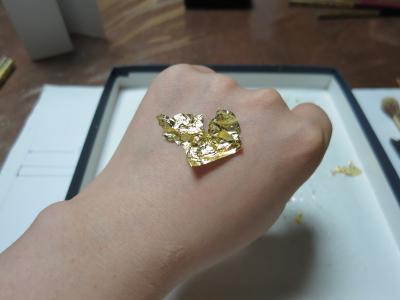 先生に丁寧に教えてもらいながら、初めての金箔にちょっと苦戦(笑)