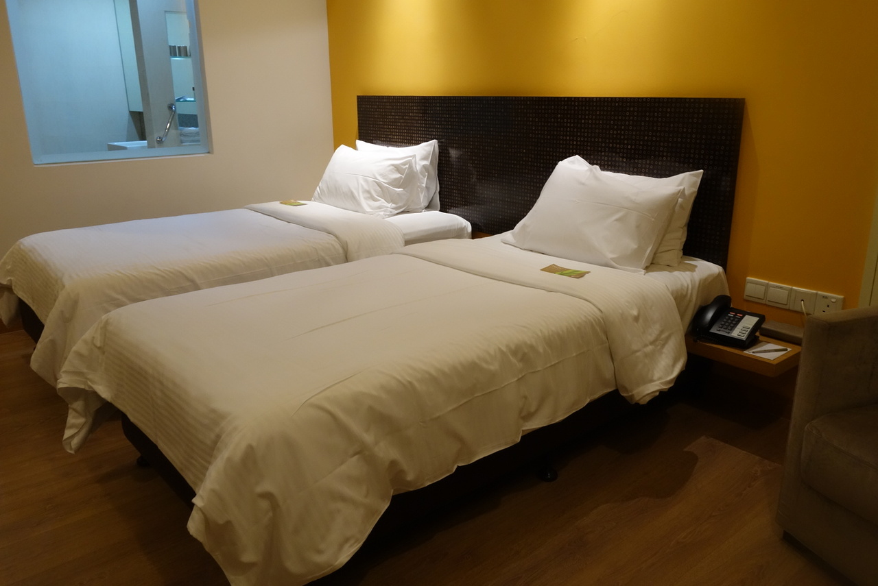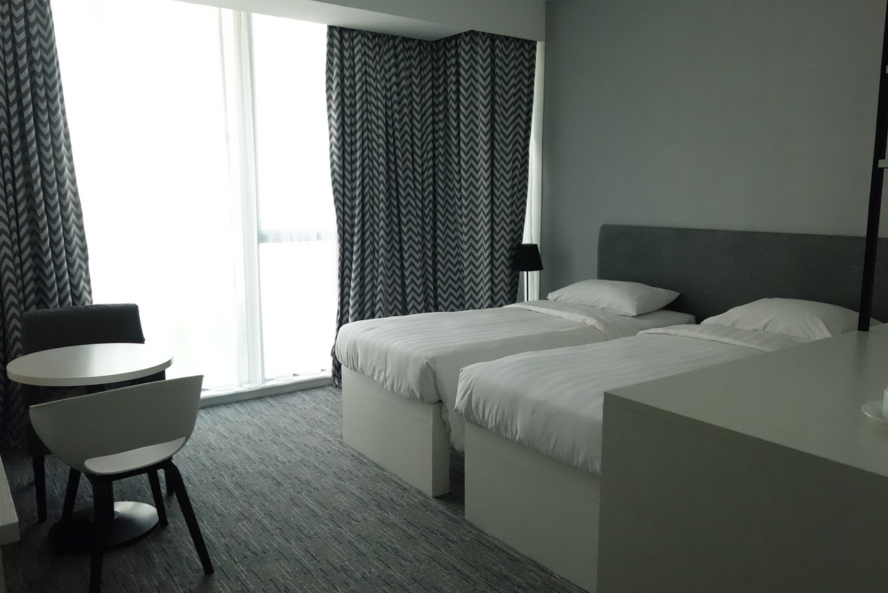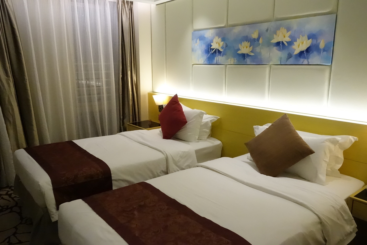 ツェンワン駅や、街へ出る送迎バスもありますが、並ぶこともあるようです。ツインの普通の客室はシービューではなかったですが、明るくて快適なお部屋でした。電子レンジも備え付けてありました。NHKワールドも見ることができました。- 旅行時期