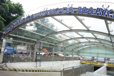 ホアンキエム湖の北、充分歩いていける場所にある、大きな市場。おそらく地上3階建て。