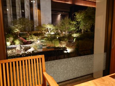 各部屋に道後温泉の引き湯の露天風呂があります。湯舟は二人で入れる程度の大きさですが、滞在中いつでも気兼ねなく利用できるのが魅力的です。引き湯の温度が高いので、翌朝残り湯を少し残して暑い引き湯を足して入るとちょうどよいでした。お食事も客室内の食事用の部屋でいただきます。襖があるので居間でくつろいで配ぜんを待つこともできます。飲み物はいつでもタブレットで注文できます。