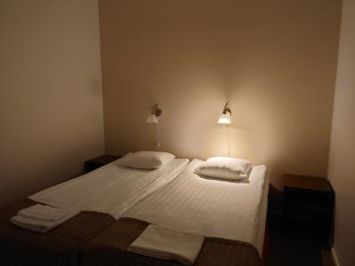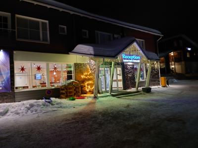 ANAストックホルム就航記念ツアーに参加して利用しました。2階建てのアパートメントでした。1階の部屋でしたが、エレベーターはなく、2階へは外階段を上る必要がありました。部屋は広く、ベッドルームとキッチンつきのダイニングがあり、子連れで長期滞在してスキーなどを楽しめそうでした。レストランは別棟なので、朝食時は気温がマイナス20度近くになり、防寒具を着ていく必要がありました。朝食ビュッフェにはトナカイの肉のソーセージなど地元の料理もありました。