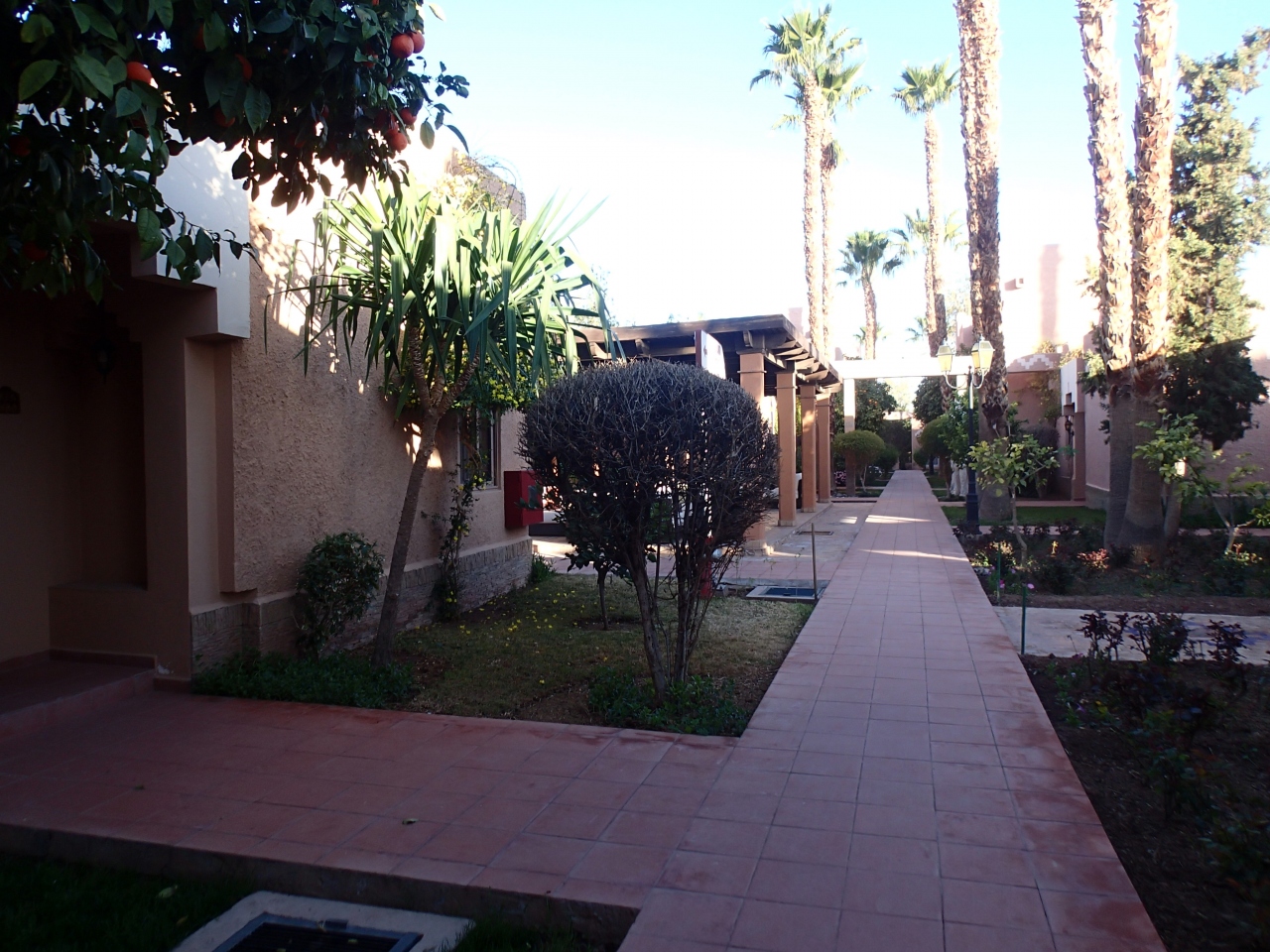 旧市街の中心にあるフナ広場付近からタクシーで50ディルハム。観光に便利なホテルです。部屋は広く使いやすいです。朝食ビュッフェの品数も十分です。ただ、大通りに面しているので、夜おそくまで通りの車がうるさいです。