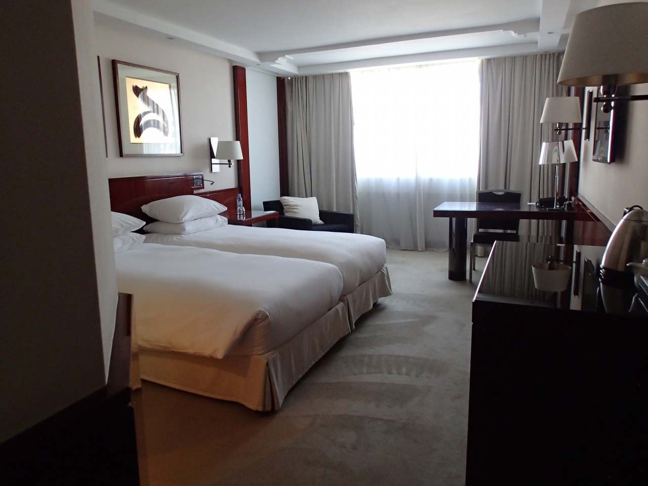 カサブランカの中心国連広場に面したホテルです。外観は少し古いあか抜けない感じですが、内装は高級感があります。建物に入るときにセキュリティチェックがあり、安心して利用できます。夕食もホテル内でいただきましたが、安心していただける味です。