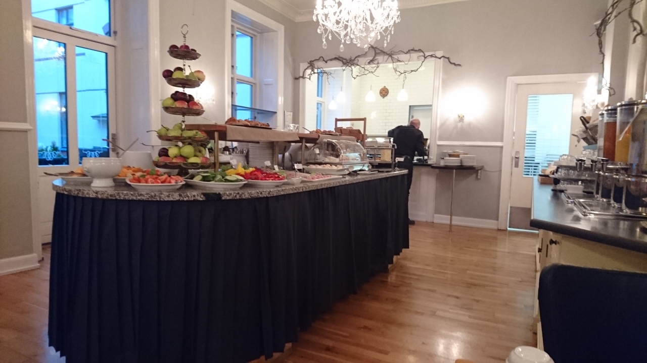 霧深い夜の到着だったこともあり、表の間口が狭く、ホテル名の表示が見つかりにくいでした。コペンハーゲン中央駅から徒歩5分ほどなので、一度場所がわかれば、とても、便利です。フロント係も親切で、明瞭な英語でゆっくり話してくれるので、英語が苦手でも理解できます。朝食ビュッフェ会場のスタッフもこまめにお料理を追加したり、きれいに並べ直したりと行き届いたサービスを提供しています。オフシーズンだったからか、廊下を挟んだ向かいの客室がリフォーム中で、9時過ぎから工事の音が気になりました。