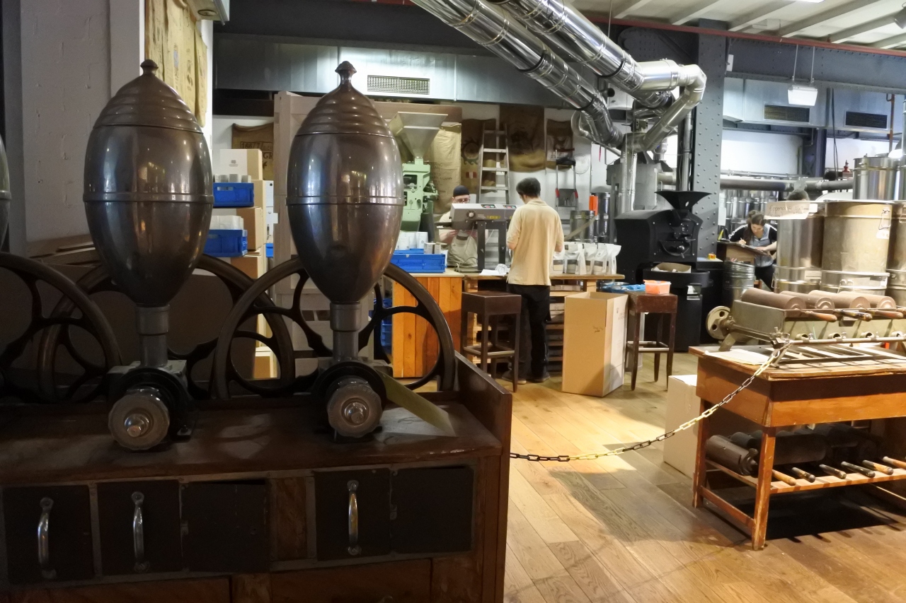 - コーヒー焙煎所の中、レトロな道具に囲まれてのコーヒータイムは最高です。