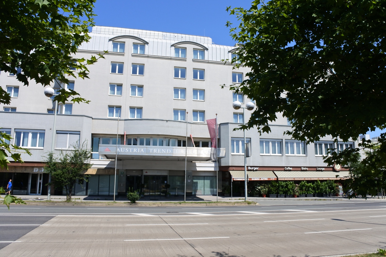ウィーン中央駅の南東側にあるホテルです。地下鉄や観光案内所があるにぎやかな出口側へは駅構内を貫けて15分以上かかります。高架上の鉄道ホームからも中央口ではなくホームの東側の端から降りたほうが近いです。また、すぐ近くにトラムD線の始発駅(中央駅ホーム東側ガード下が隣の駅)があります。この路線はリンクを経由してホイリゲが多くあるハイリゲンシュタットの少し北側までです。この路線をうまく利用できれば時間を有効活用できると思います。