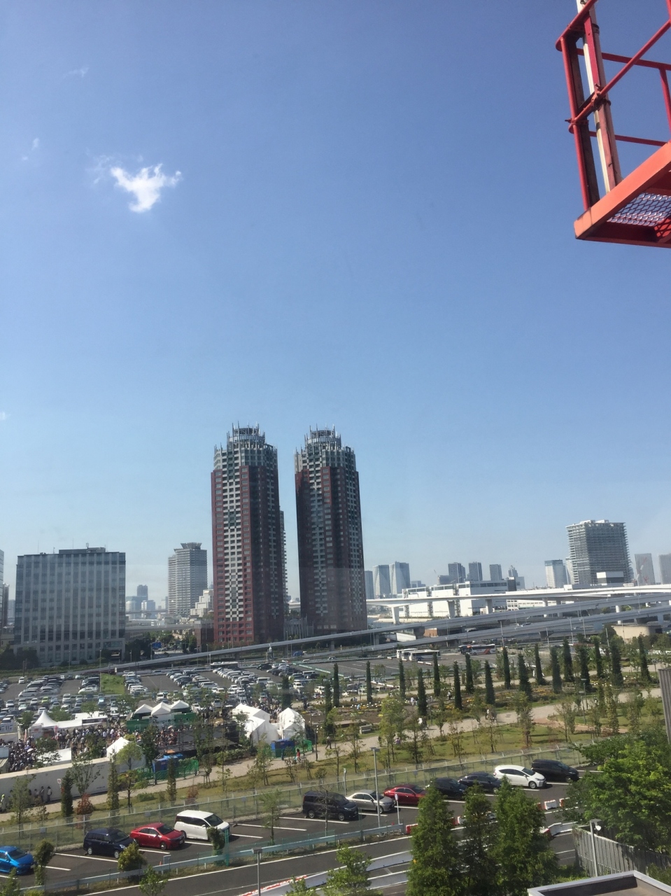 東京テレポートの駅とパレットタウンの間にある公園、横にも広くガンダムがあるダイバーシティーのほうまでずーと公園が遊歩道になっています。子供と一緒に、トーテムを見に行く途中、この公園を歩きながら行きました。肉フェスなどもやっていて混んでいましたが、心地よい風が吹いていてゆったりと散歩できました。