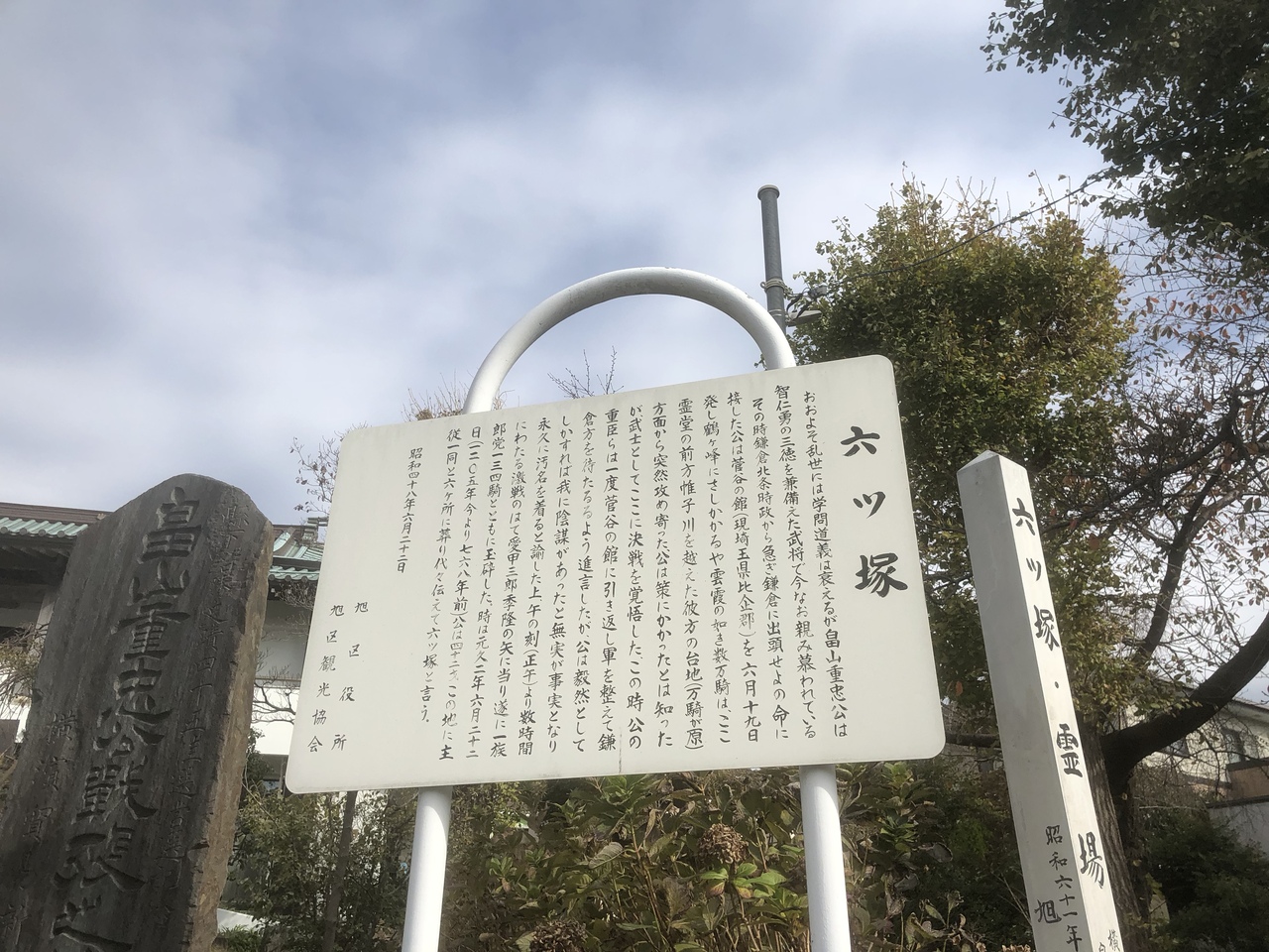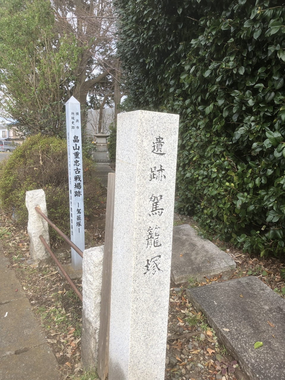 相鉄線の鶴ヶ峰駅から徒歩20分くらいの山の上にある畠山重忠の遺跡です。このエリアには畠山重忠の古戦場の後がたくさん残っています。ここもその一つで山の上にあります。非常に良く敵が見渡せた場所だと思います。
