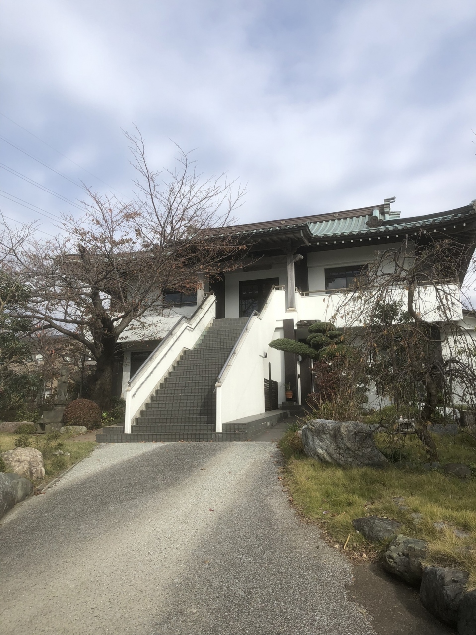相鉄線鶴ヶ峰駅から徒歩20分くらいズーラシア方面に行ったところにあります。入り口は急坂になっています。登った丘の上には木造の立派なお寺があります。ここもまた立派な階段があります。浄土真宗のお寺。入り口の石碑の真宗が古さを感じるものです。