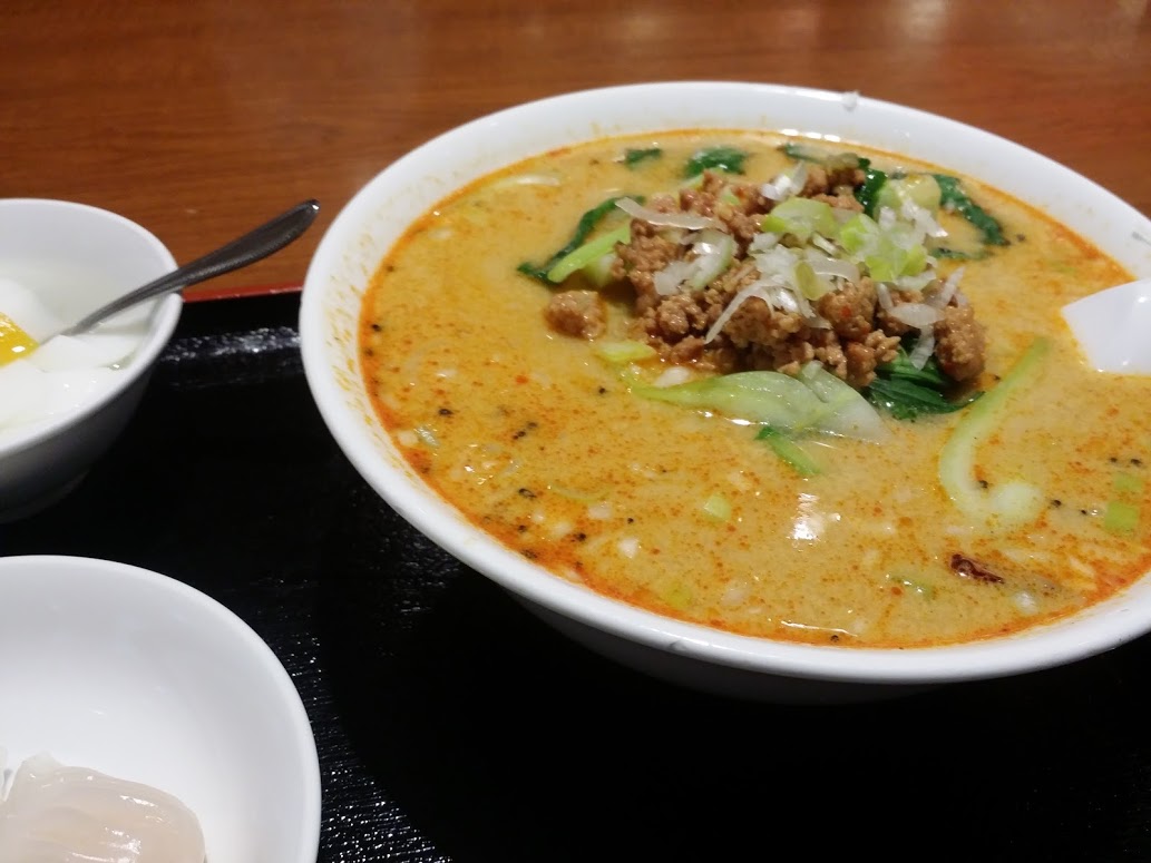 二子玉川駅のショッピングセンターライズにある有名な中華料理屋。ここの有名料理は焼きそばですが、あえてランチメニューから担担麺をチョイス。辛さがちょっと控えめな感じでしたが、おいしいスープでした。またランチにはぷりぷりの海老餃子がついてきておいしい食感です。これ以外にもいくつかランチメニューがあります。
