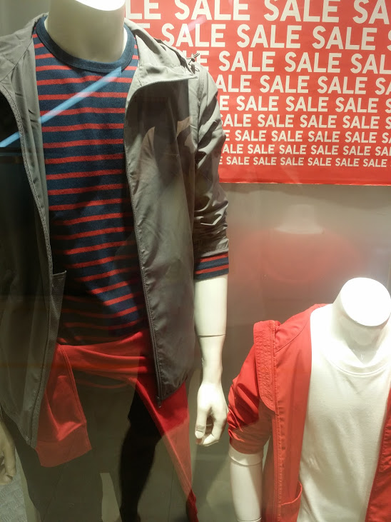 行ったとき(お盆)はまだまだ非常に暑かったですが、もう秋の新作がずらーっと、展示されています。すでにTシャツなどの夏物は割引に。ファッションのお店に行くと一足早く秋を感じますね。