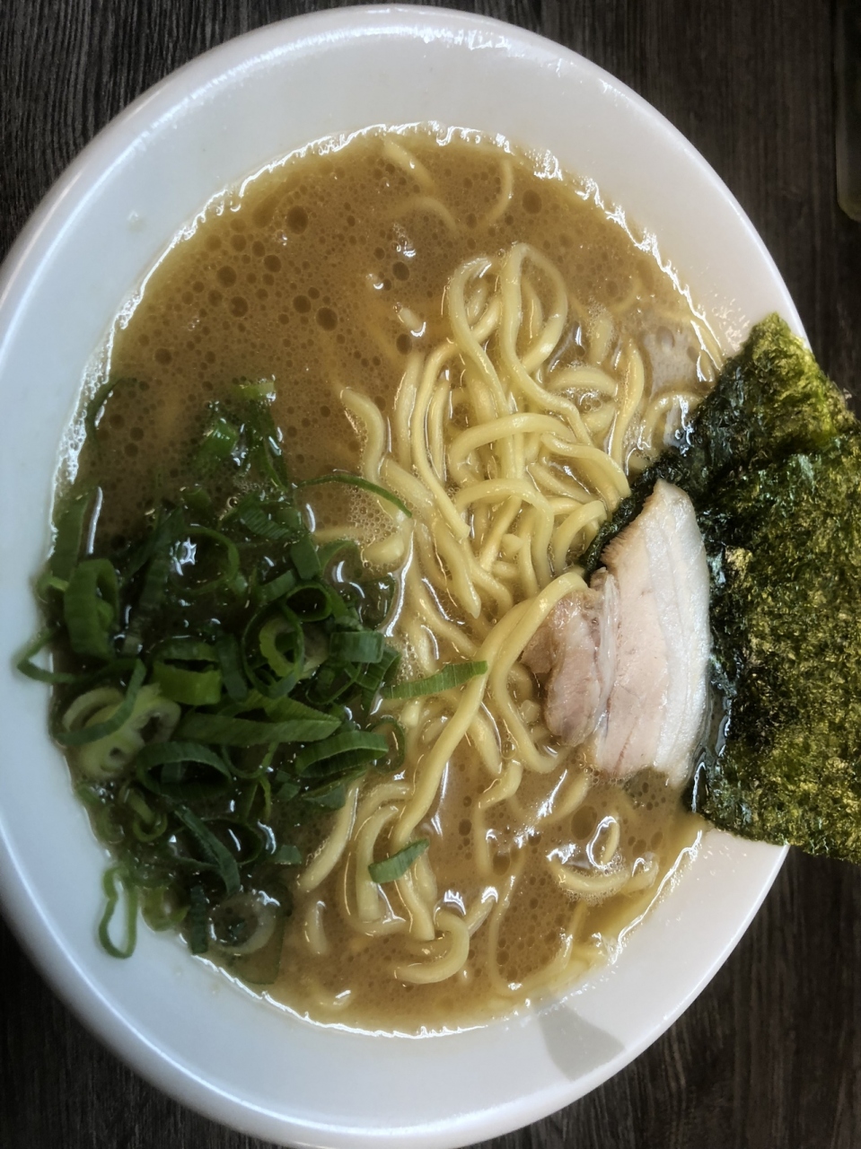 スープは甘みのあるとんこつラーメンに近く、ほうれんそうがないが、麺は家系に近い。