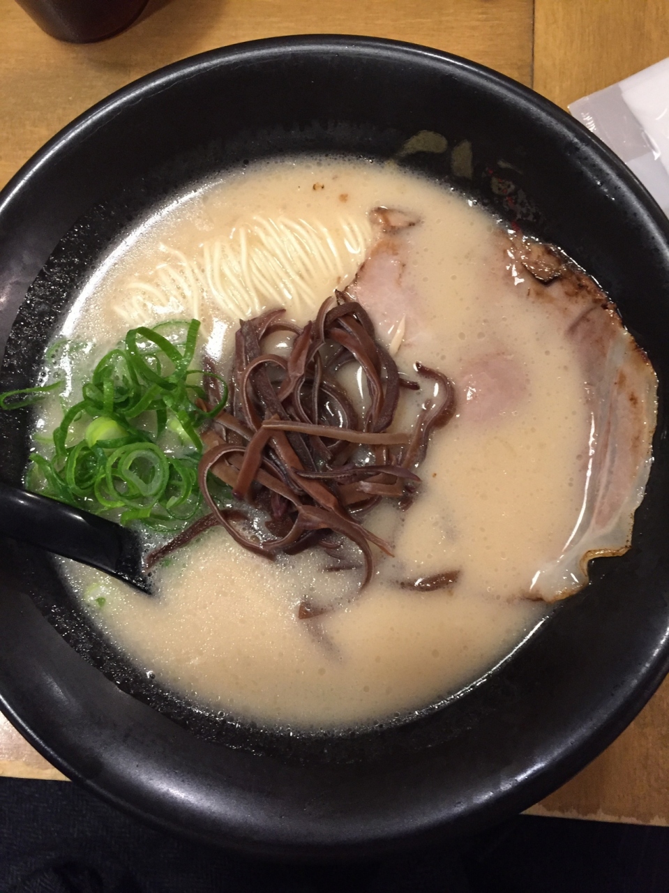 博多駅前にある豚骨ラーメンのお店です。飛行機に乗る時間が少しあったのでネットで調べて行きました。夕方の時間でしたがすぐ入れました。店内にはカウンターといくつかのテーブル席があります。