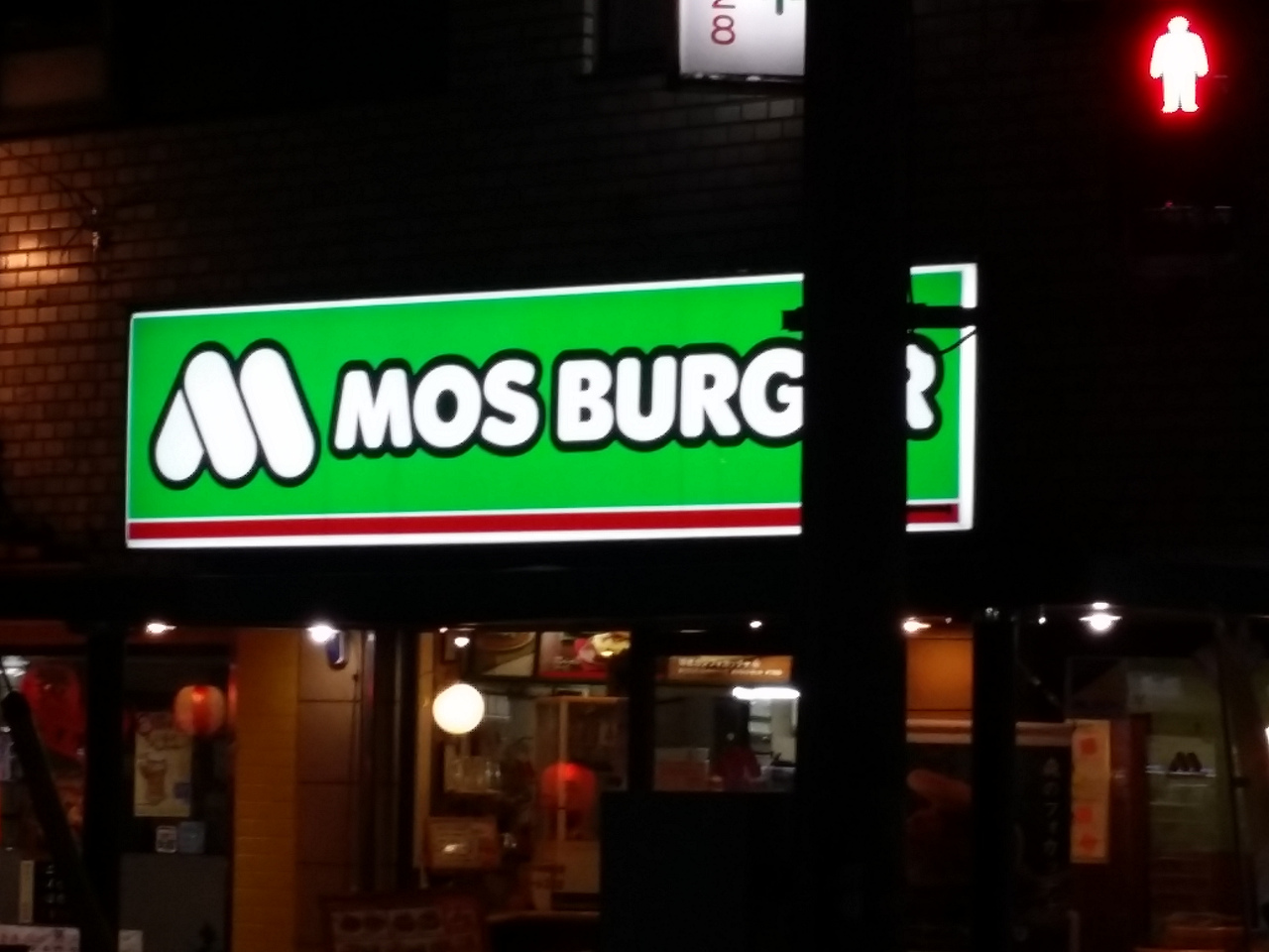 三ツ境の北口、笹野台側にある、入り口の手書きの看板が入りたくさせます定番のモス。