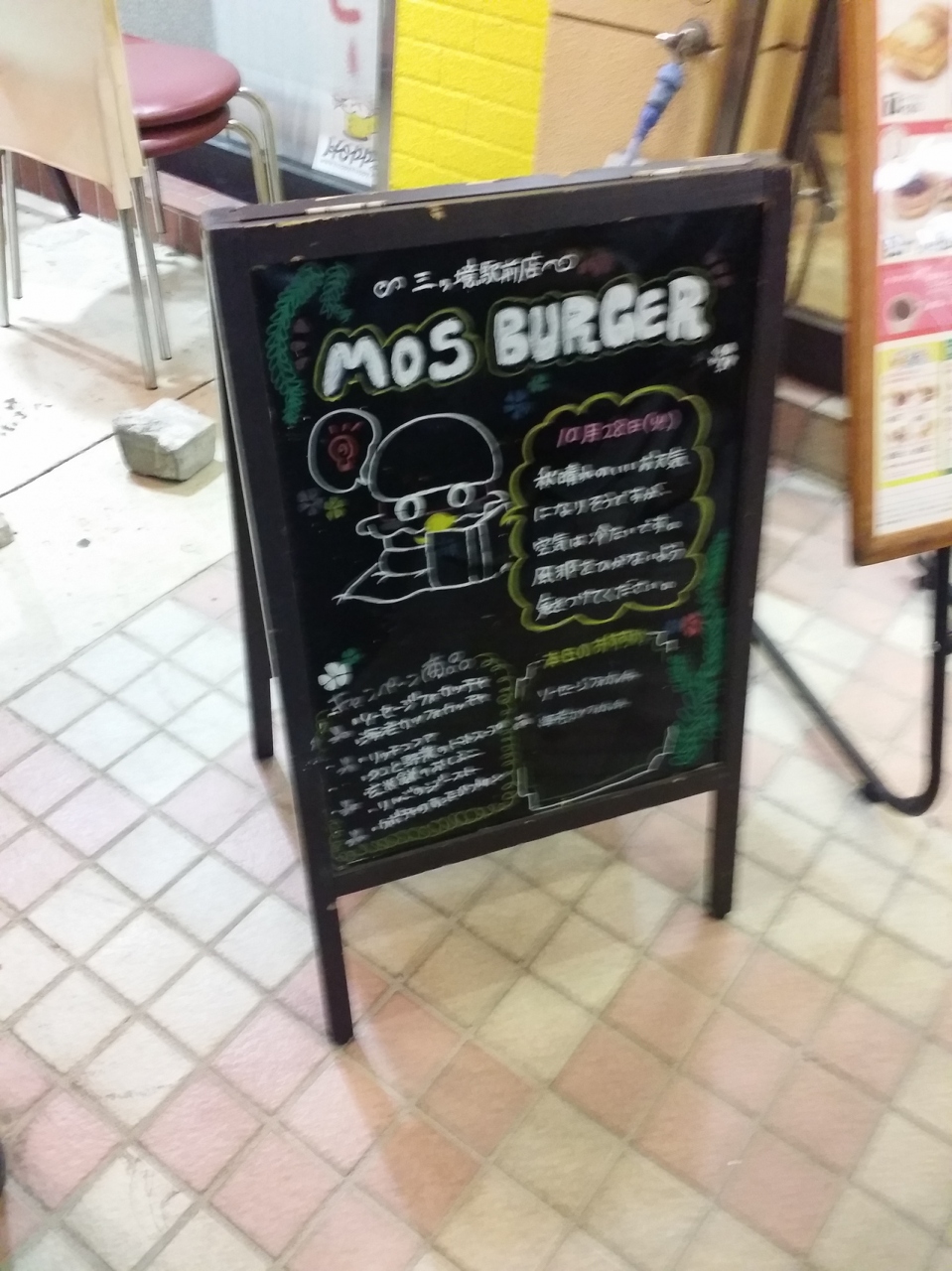 入り口の手書きの看板が入りたくさせます定番のモスバーガー