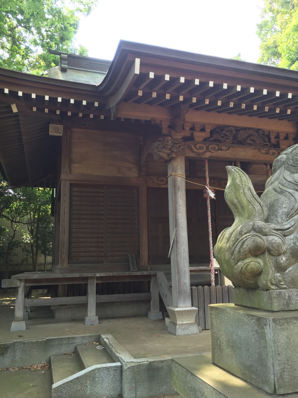 まだ梅雨も明けてない、35度近くの気温の中、ランンングの途中に寄りました。坂の下から境内に通じる道から緑に囲まれ、暑さをしのげるほど日陰になっていました。境内も周りの森で日陰が作られ、暑い中でも元気に遊んでいる子供たちもいました。