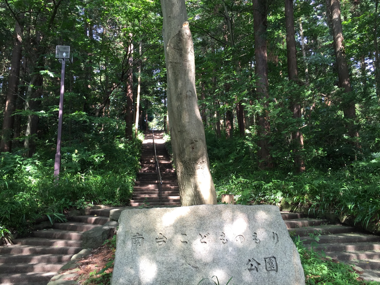 静かな住宅街にある山を利用してある公園です。入口(川のほとり)からは気と気に囲まれた非常に急な階段を登っていく感じです。暑い日だったのですがこの周辺だけは温度がちょっと低い感じしました。