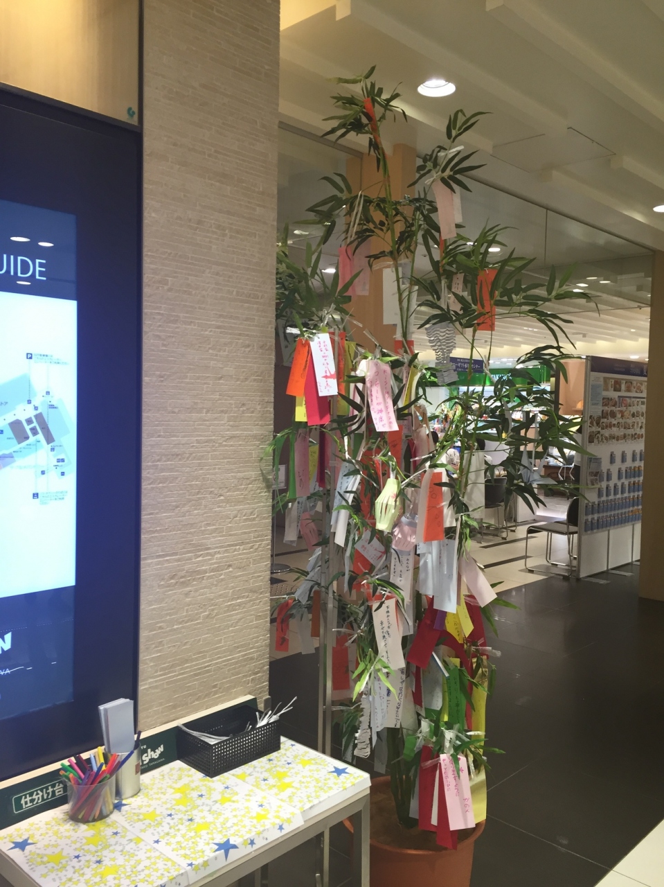 この時期、デパートとかスーパーに行くといろんなところで七夕の願い事が書けますよね~。