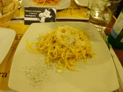 本場のカルボナーラを食べに来ました。日本のカルボナーラとはやや異なりましたが(日本のほうがクリーミー感がある?)、おいしかったです。塩気が少し強く感じましたが、僕はこっちのほうが好きでした。