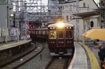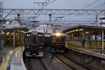 阪急宝塚線・石橋駅(現・石橋阪大前駅)から分岐してゆく、阪急箕面線。路面電車時代の名残りを引き継ぐ複線構造のまま、ぐんにゃり分岐している場所です。大きな電車がこんな形で分岐している場所はありません。当時は、朝夕は梅田との直通電車があり、ここの分岐をぐんにゃり曲がりながら通行してゆくのが楽しめましたが、ダイヤ改正で、直通運転が大幅削減され、この楽しみを味わえることが無くなってしまったのは残念です。