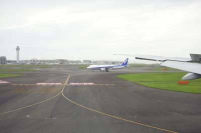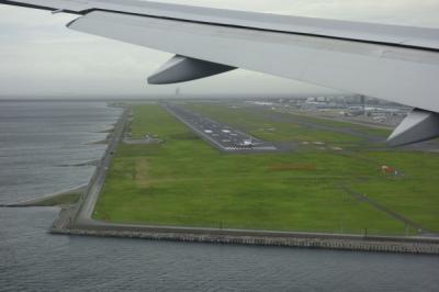 晴雨昼夜かかわらず楽しめる羽田空港。B滑走路に着陸する飛行機から見える景色は、普段見れない景色でもあります。ちょうどC滑走路より離陸しようとする飛行機を俯瞰しながらの着陸に出逢うことが事が出来ました。こういう事があるので飛行機旅は楽しいです。