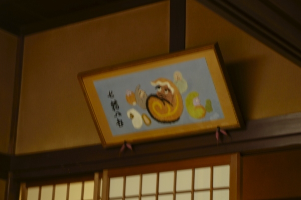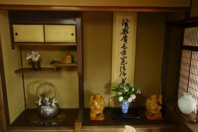 奥の座敷スペースが最高。床の間や鴨居の上には、色んな縁起物が一杯で素晴らしい。