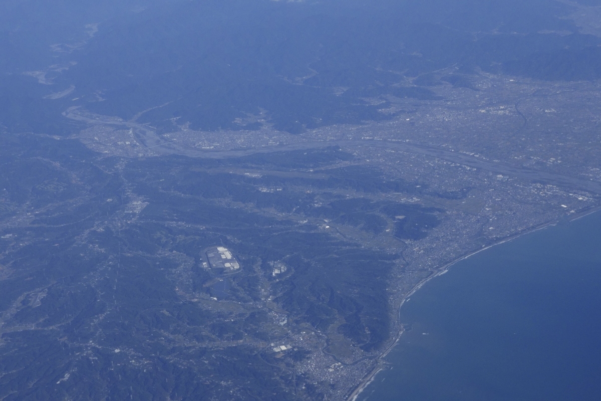 台地の上にある、静岡空港(富士山静岡空港)。東海道新幹線が真下をトンネルで通過する台地上に造成されており、静岡から全国各地への航空機移動を考えて造られました。日本各地へ空路を伸ばしている、地元資本主体のフジ・ドリームエアの本拠地でもあり、地方都市間をリージョナブルジェットで直結して所要時間の短縮と効率移動を行うという思想の嚆矢にもなっています。