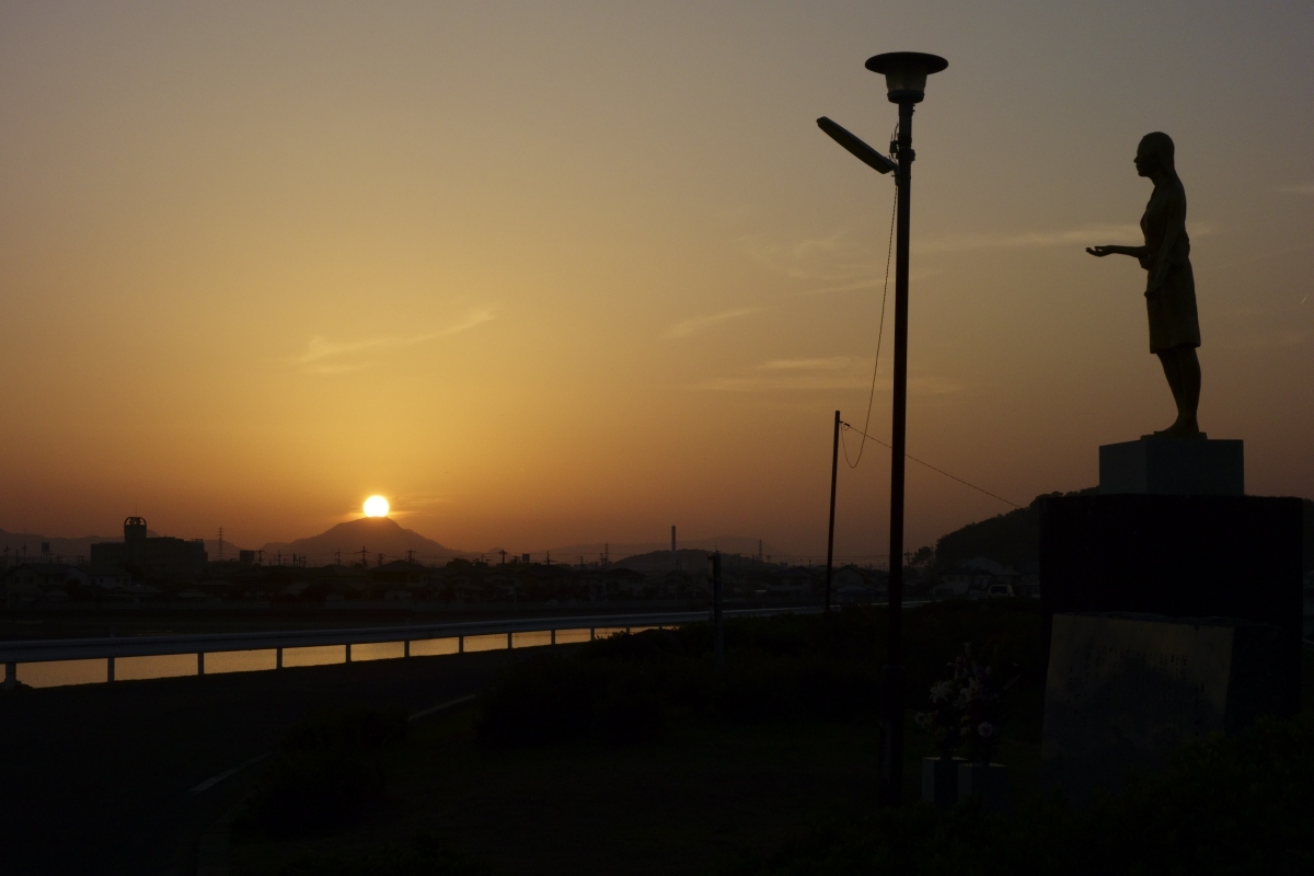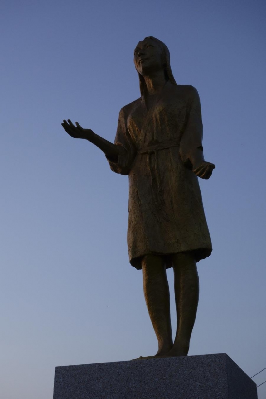 高松市の南部にある、仏生山法然寺。この付近は昔の街並みを残す讃岐浪漫豊かな土地でもあります。法然寺の南側付近は公園になっており、長閑な一日を過ごすことが出来る土地で、法然寺と対になるちぎり神社に伝わる「いわざらこざら」伝承に基づいて、昭和時代にコンクリート製の「乙女の像」が広大な平池(へいけ)の堤防上に立っておりましたが、2018年に、同一作者によるブロンズ製の像に更新されました。時代の進展に伴い、豊かな土地に変わった讃岐の地を見守るような像の姿に未来を託したい気持ちになります。