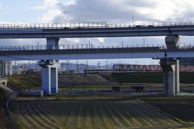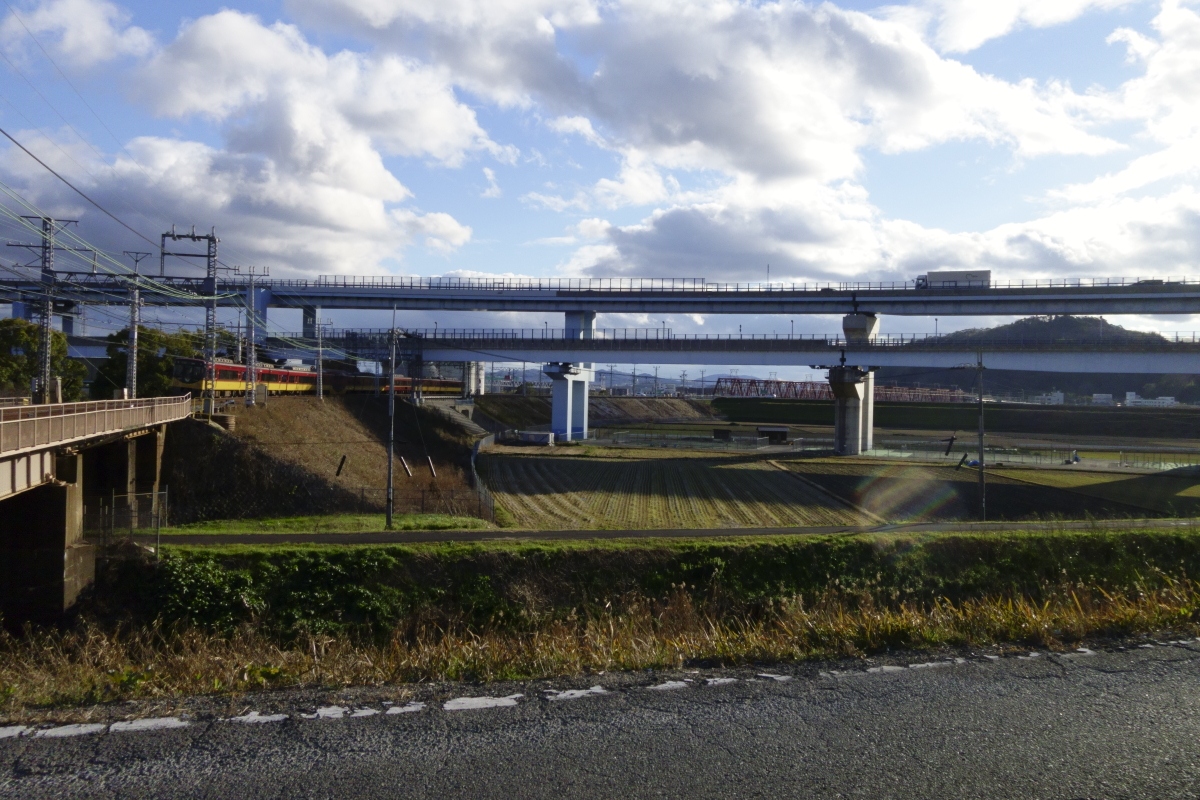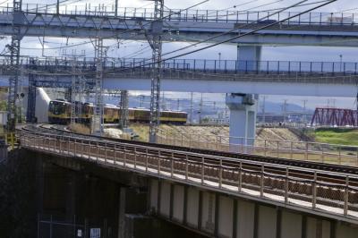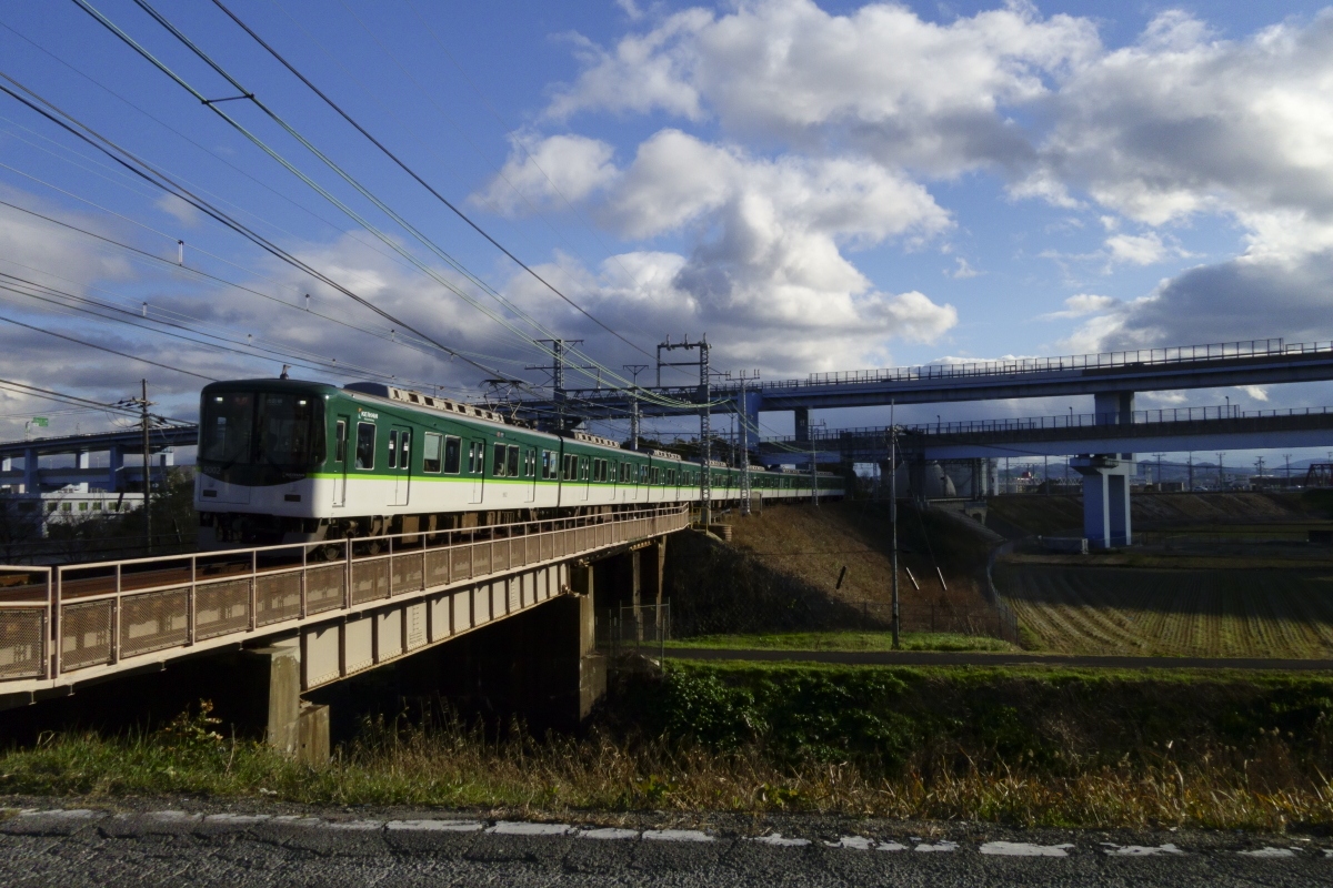 京阪間の鉄道移動は、新幹線を除けば、阪急京都線、JR西日本と、京阪本線の3つの選択肢がありますが、路線条件は京阪線が一番悪く、カーブと踏切の王国であったのですが、大阪・京都のターミナル駅が繁華街に近い利点を生かして、豪華な車両や乗り心地のよい車両を開発して使用してきました。線路改良も行われて、高架と複々線化などで対応。写真の八幡市から淀付近は、「三川合流」で名高い要害で、そこを大カーブと木津川、宇治川を豪快なトラス橋で越えてゆく、好景観な撮影地でもあります。