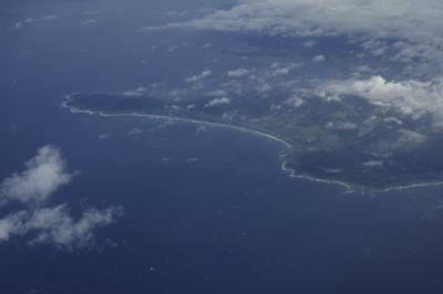 羽田空港に向かう旅客機から見えた、初夏の伊豆半島にある美しい火山、大室山。厚い雲の切れ間より覗いた翠の山嶺はとても美しいものでした。季節によってその彩りを変える山でもあって、その景色が見れるときが楽しみでもあります。