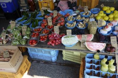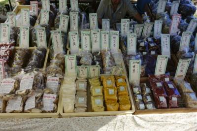 高知名物・日曜市は追手門通りの片側車線を市場に使った構成で、日本のマルシェとしてはトップクラスの規模を誇ります。野菜果物、海産物のほか、日用品、観光案内所なども並びます。一往復するのに随分時間が掛かりますが、お店を見ながら行くと、あっという間の時間経過と相成って仕舞います。