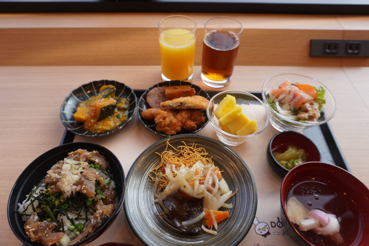 ドーミーインはどこのホテルも朝食には力を入れていますが、ここは特に地元色が濃かった気がします。岡山名物のばら寿司、鰆のたたき、牛鍋、蒜山ヨーグルトなど盛りだくさんで良かったです。- 旅行時期
