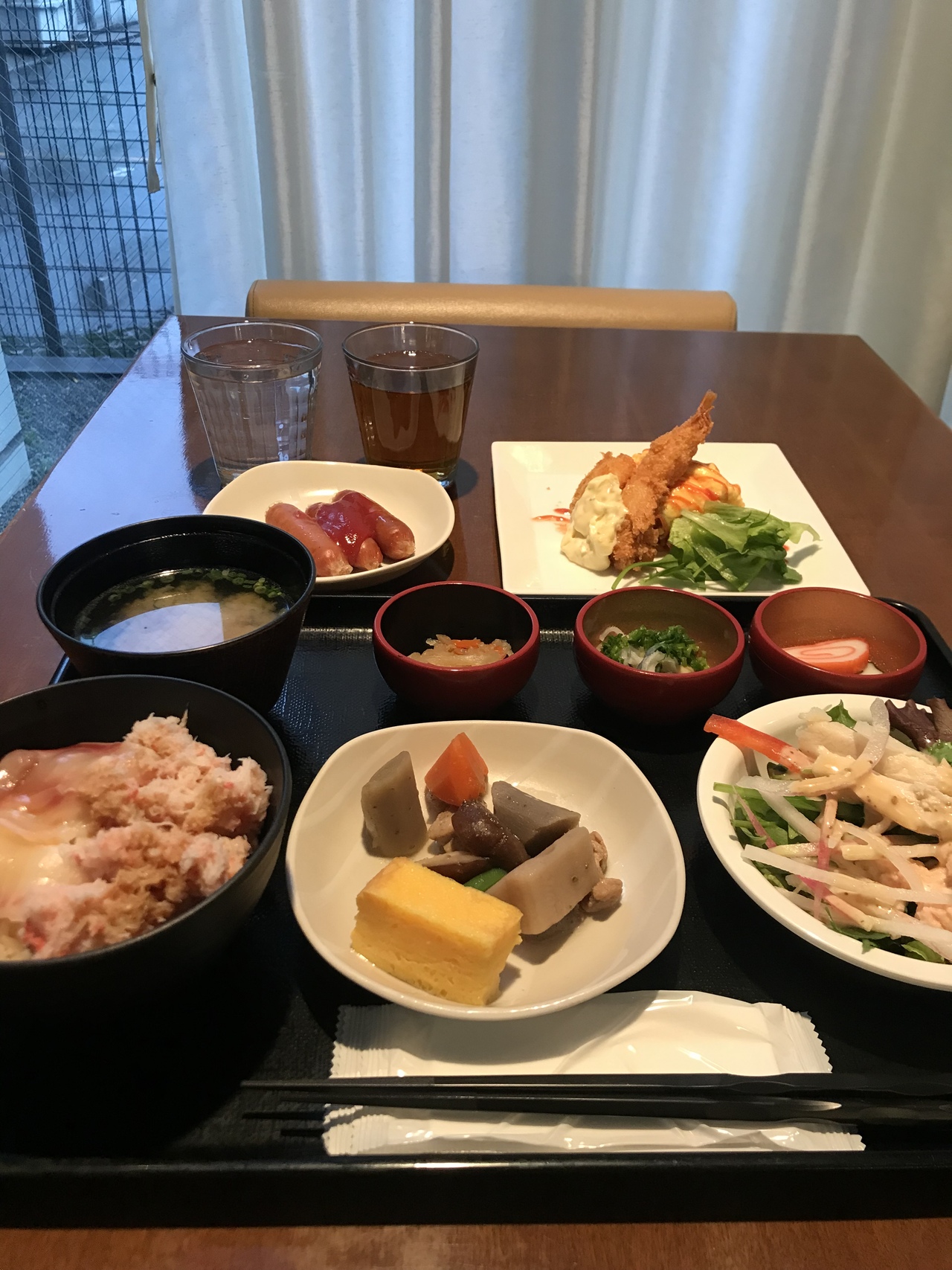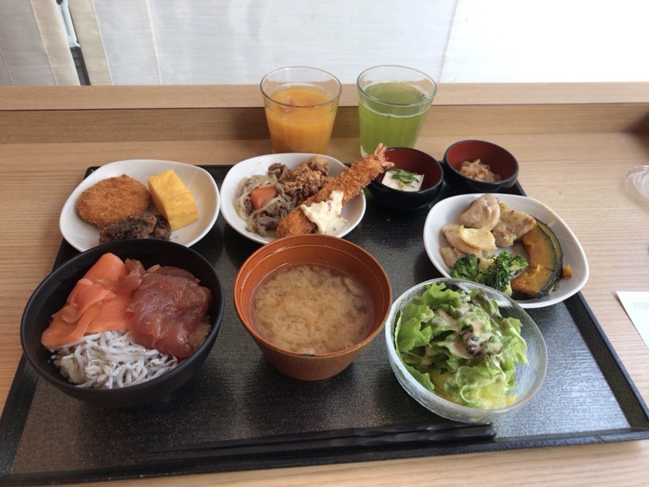 朝食は和定食+ビュッフェスタイルで、終了時間間際だったため、ビュッフェはあまり残っていませんでしたが、りゅうきゅうなどもありなかなか豪華でした。