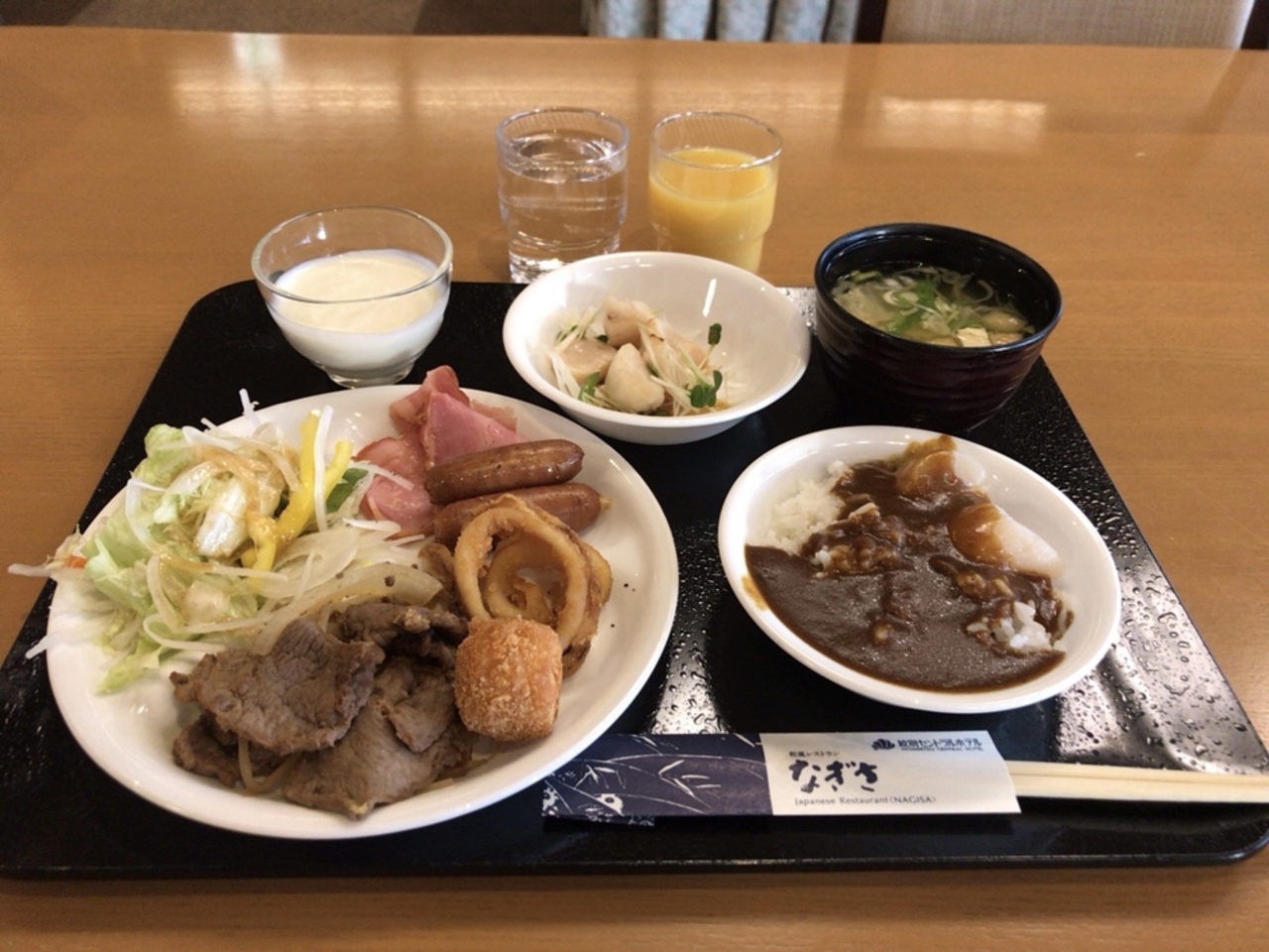 温泉は茶色い色のモール温泉で、温泉もサウナも気持ちよかったです。朝食は洋食、和食、スープカレーの中から選択。洋食を選びましたが、コーンスープもオムレツも美味しかった!