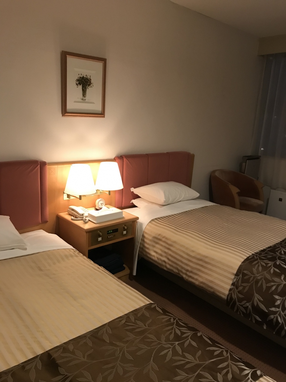 シングルルーム、ホタテづくしの夕食と翌朝食付のプランを予約。 チェックインするとツインルームになっており、広々とした部屋で過ごせました。