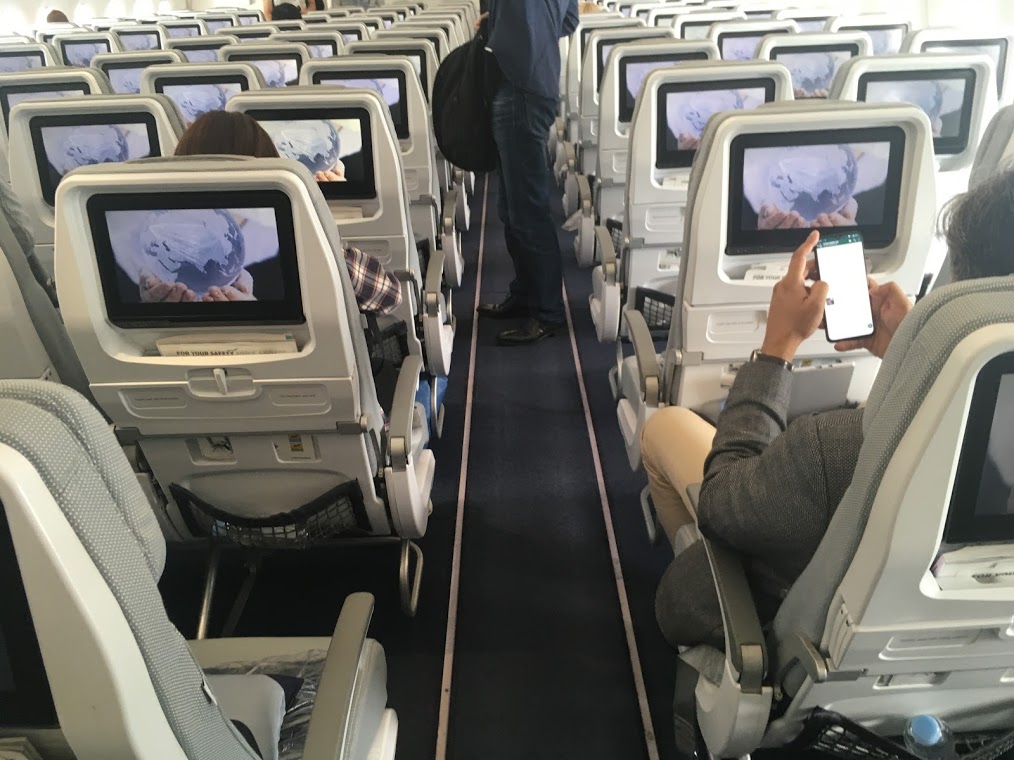 座席にモニターはありませんが、スマホなどにフィリピン航空のmy PAL playerアプリをDLしておけば映画やmapなどを見ることができます。