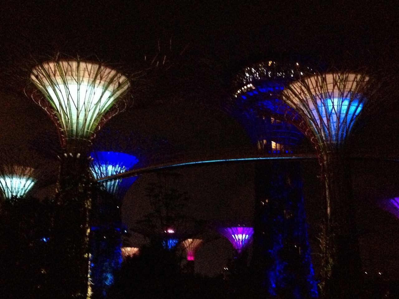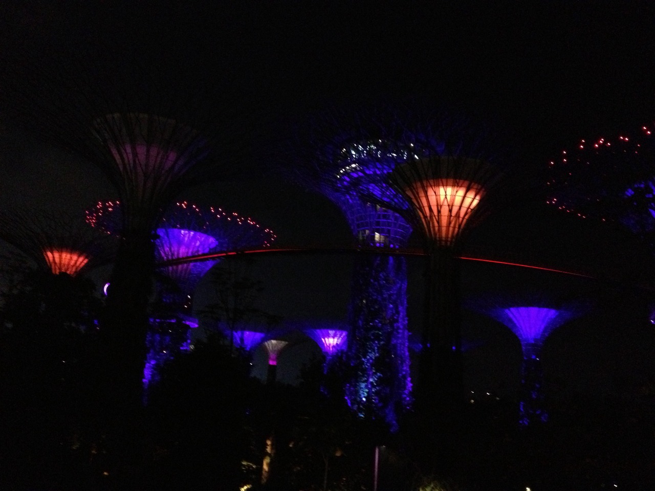 夜はライトアップされていて、光のショーもあります。形も独特で近未来っぽい。こんな植物園は日本にはないので、見ていて面白かったです。