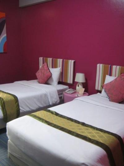 カラフルな内装のホテルです。写真のままの内装ですが、豪華さはありません。写真より少しチープな印象でした。