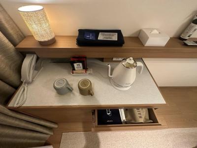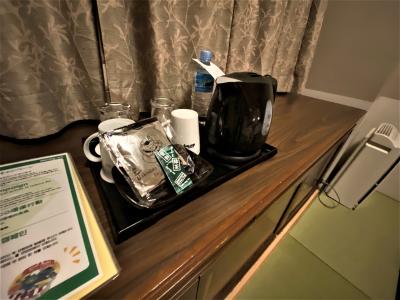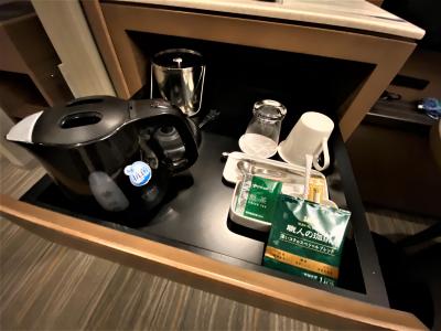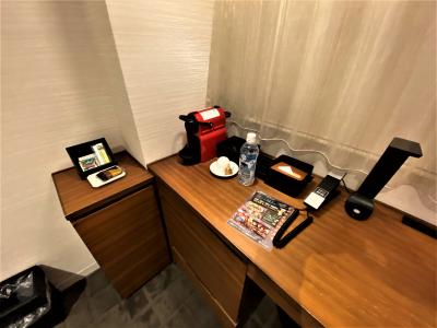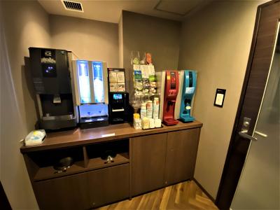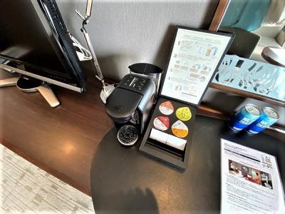 お部屋にコーヒーもありません。1階のコーヒーマシンのみ。