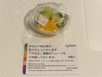 室内の冷蔵庫にはウェルカウオーターとフルーツが入っています。