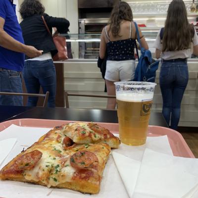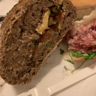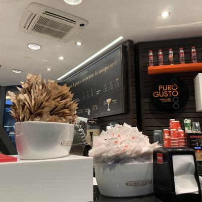 メストレ駅の中で何か食べ物を探します。レストランに行くほどの気力も時間...