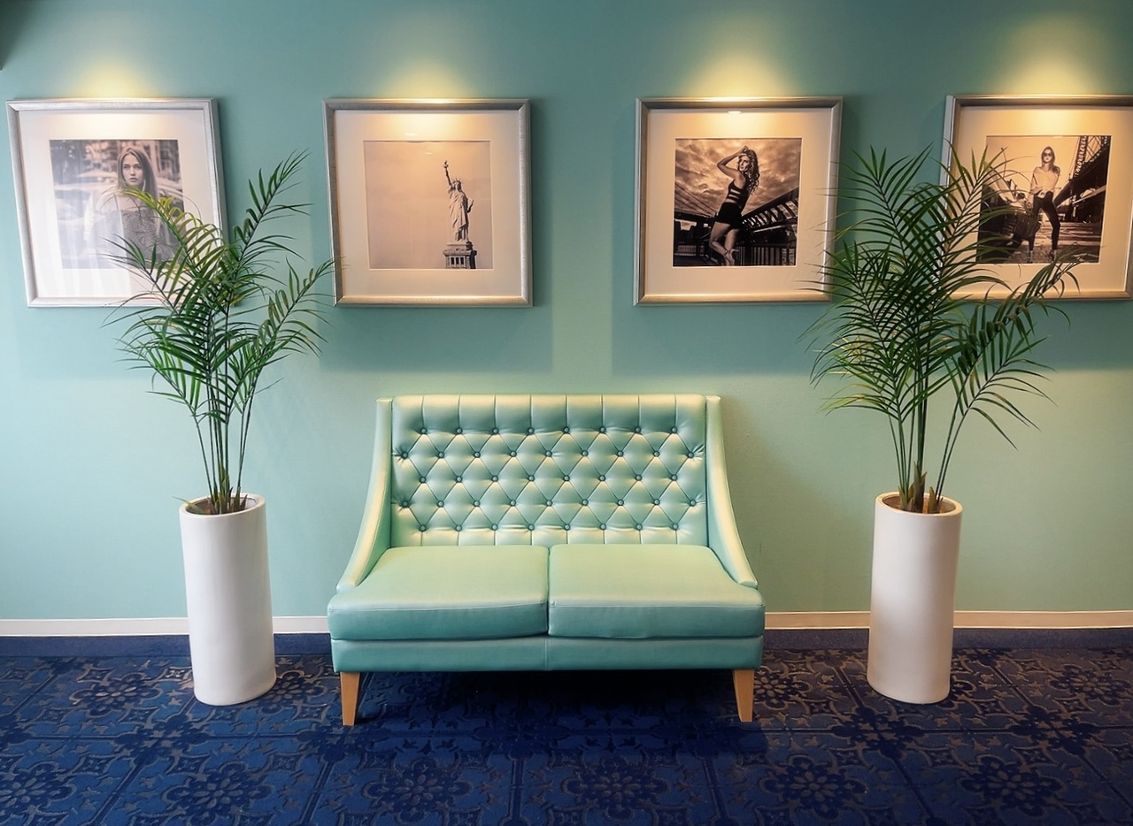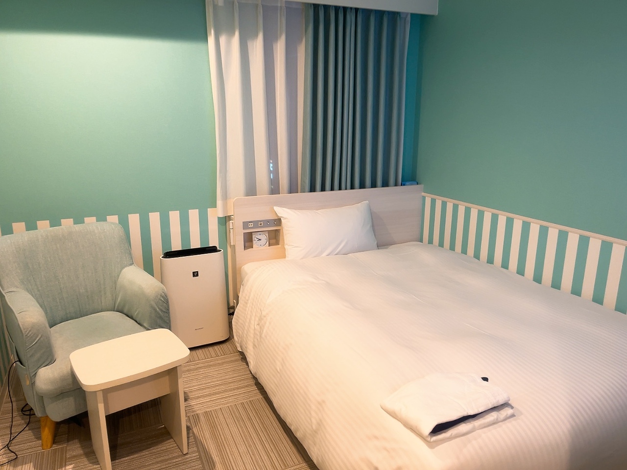 エメラルドグリーンを基調としたお部屋の内装にワクワク。 女子ウケしそうなホテル!