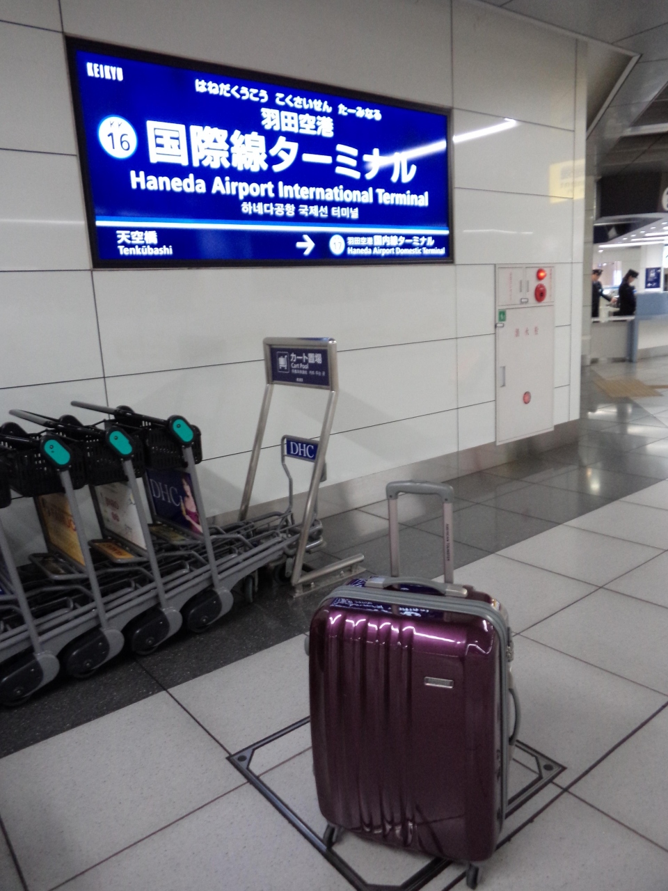 品川駅から乗り換えなしで羽田空港まで行けます(行き先は、羽田空港行きを利用)。 空港行きとあって、スーツケースを持った乗客が多いですね。 乗ってる人たちのテンションも高めなのが見てて分かります。