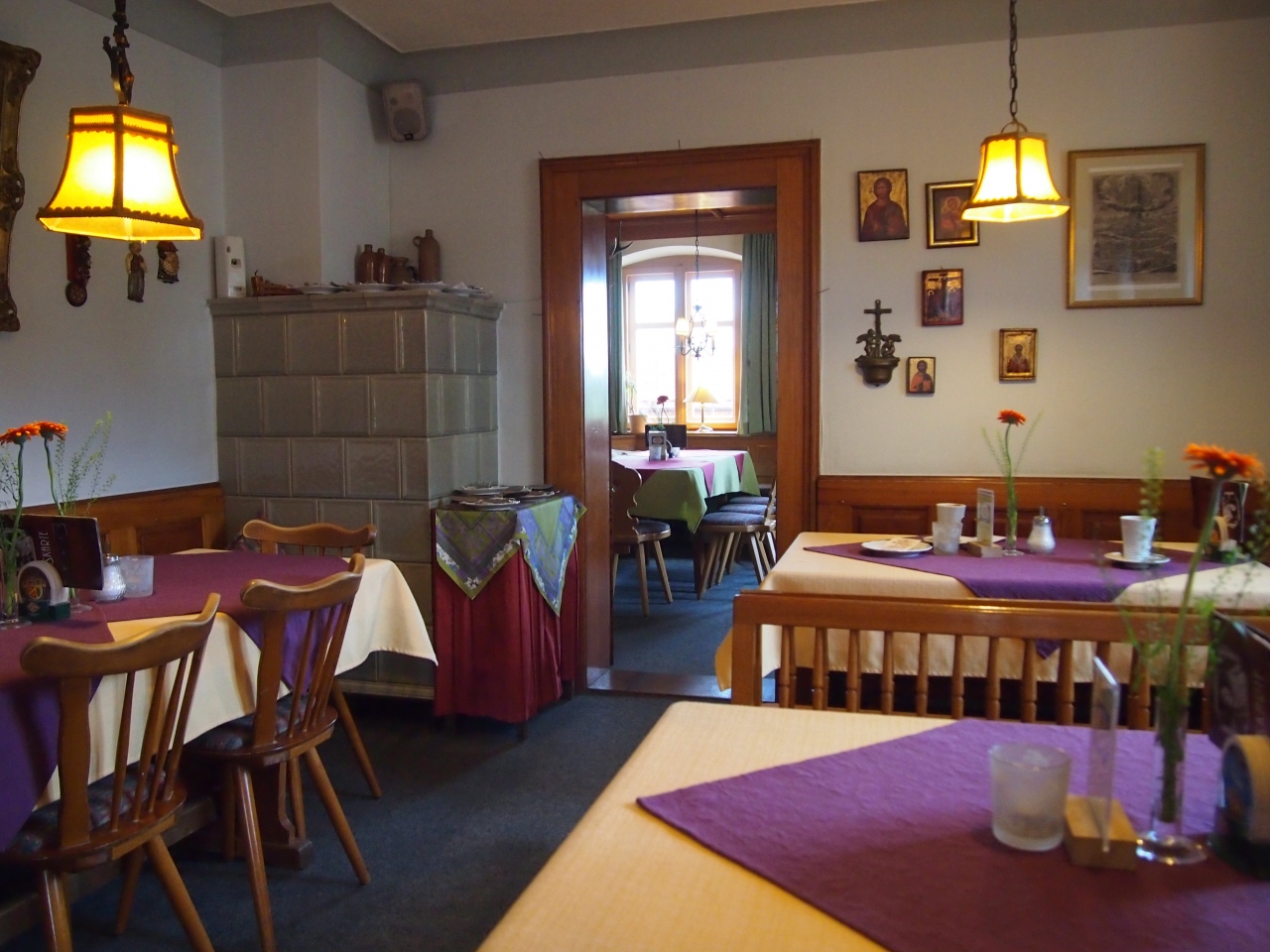 朝食をわざわざ我慢して、ヴィース教会の真ん前に建つこじんまりとしたレストラン、Gastohof Schweigerに行きました。 店内は、温かい雰囲気を感じることが出来る、個人経営のレストランって感じです。