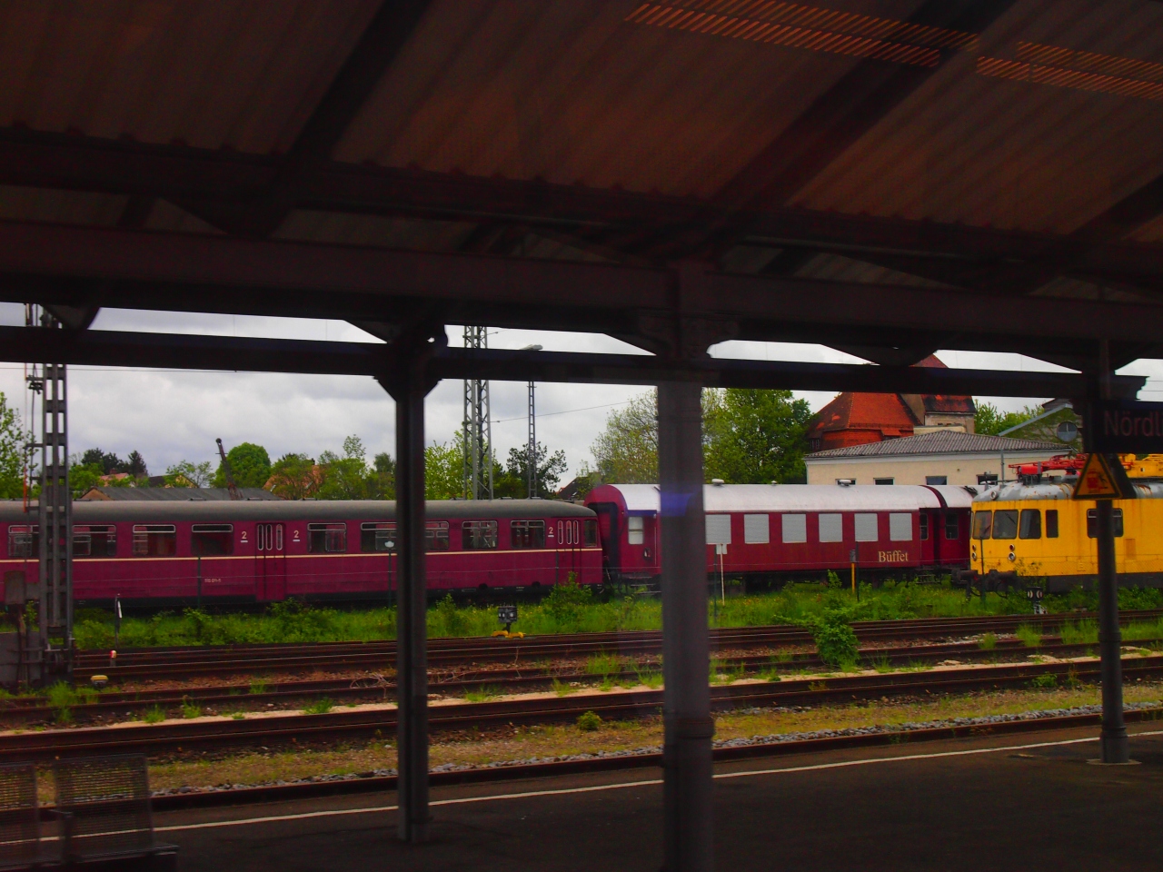 ヴュルツブルクから、ドナウヴェルトで乗り継ぎ、この駅に到着しました。 ストライキの影響で1時間遅れての到着です。 ローカル列車のみが停まる小さな駅で、到着後は観光の時間が短くなってしまうので、駅にほとんど滞在せずにそのまま出発したので、駅舎の内部まではちゃんと確認してません。 取りあえず、スーツケースを預けられるような大きなコインロッカーはないようです。 旧市街の観光案内所で預かってもらえますのでそこまで頑張って持って行きましょう!
