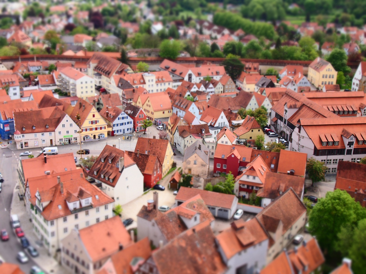 城壁に囲まれた真ん丸の街(ポストカードやガイドブックを見ると分かる)、列車の駅からは徒歩10分くらいです。 観光に便利なロマンティック街道バスの場合は、旧市街のど真ん中の市庁舎前にバスが発着しますので分かりやすいですね!- 旅行時期