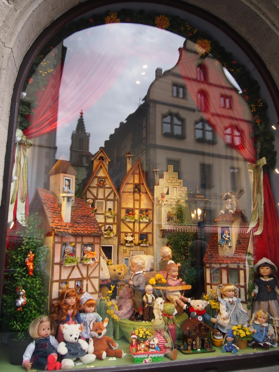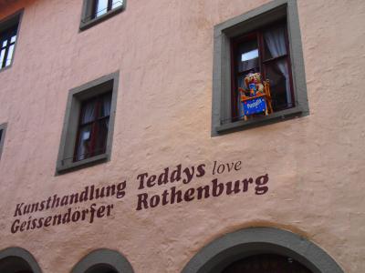 ローテンブルクの旧市街にあるお店。 上を見上げると、シャボン玉を吹くテディーベアーを発見☆ それがテディーベアーのお店の目印です!