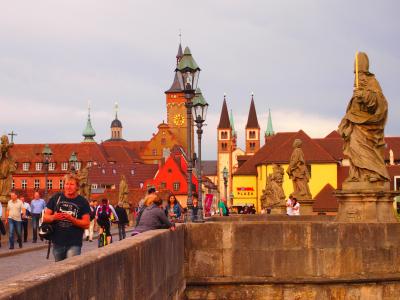 ヴュルツブルクで、観光客に1番有名な橋。 橋の上でワインを楽しんでいる人がたくさん!