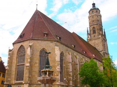 ネリトリンゲンの旧市街の真ん中に建つ、市庁舎近くのかなり大きな建物なので、すぐ見つけることが出来ます。 街でこの教会の塔が1番高い建物なので、道に迷ったら、この塔"ダニエル"を目指して歩けば市の中心地に戻って来れます。