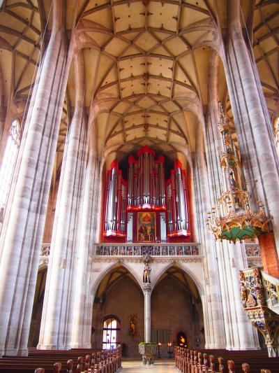 私たちがバスで訪れた日は、ディンケルスビュールでの停車時間は35分間でしたが、それでも時間的にはヨユーでした! 塔の展望台に上る時間は最初からなかったけど(この塔はどちらにしても公開されてる曜日が限定されてます)、教会内部を見学しました。 荘厳な雰囲気を感じます。 パイプオルガンも立派でした!- 旅行時期